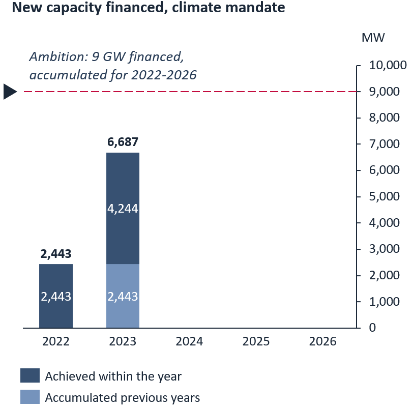 In 2023, Norfund helped finance the construction of 4,244 MW of new electricity generation capacity under the climate mandate, including on-grid (IPP) projects and commercial & industrial (C&I) projects. This is a significant increase from 2,443 MW in 2022. With a total of 6,687 MW over the two years, Norfund is well on track to deliver on the ambition to finance 9 GW new capacity under the climate mandate during the strategy period 2022-2026.
