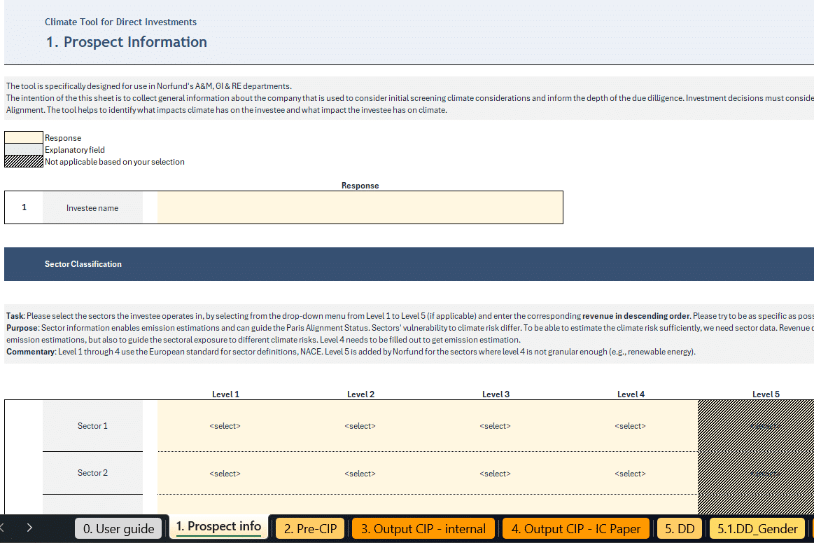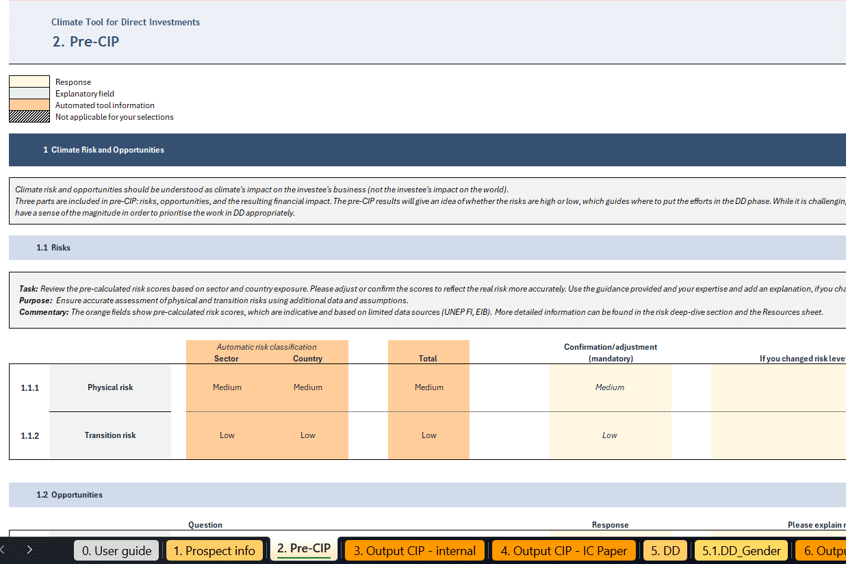 There are three slightly different tools for a) direct investments, b) financial institutions, and c) fund investments, as they all have somewhat different approaches to climate risk and Paris alignment.